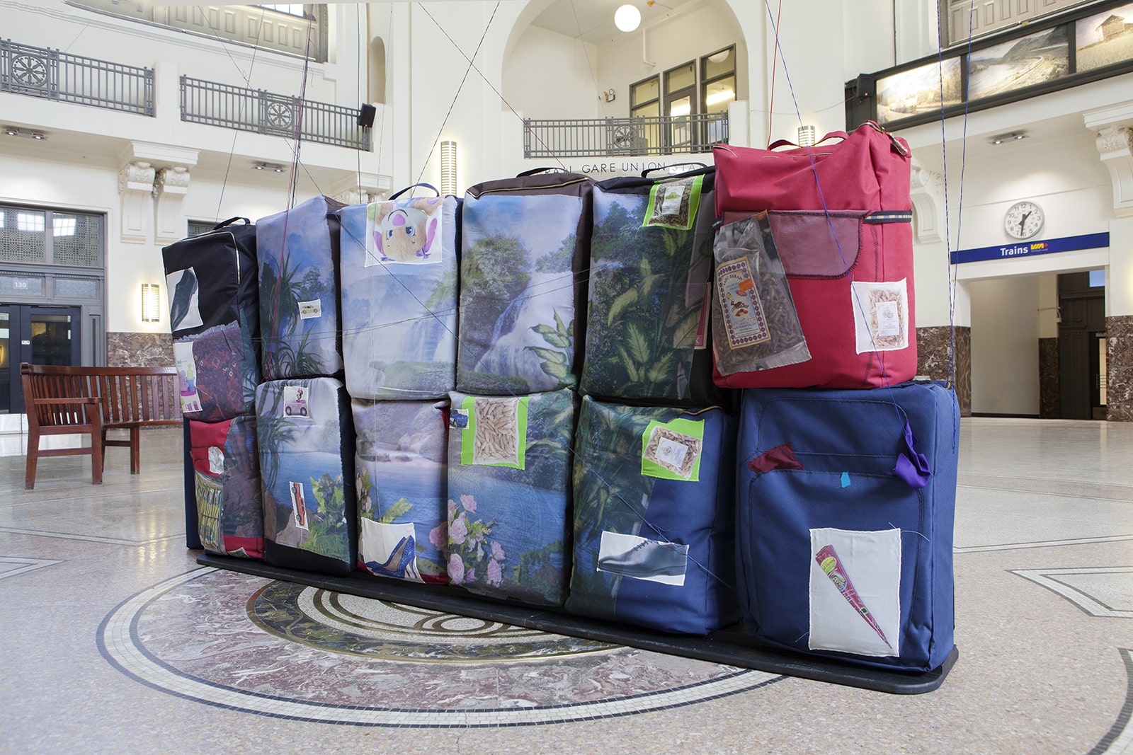 Hangama Amiri works predominantly in textiles to examine notions of home, as well as the ways in which gender, social norms, and larger geopolitical conflict impact the daily lives of women, both in Afghanistan and in the diaspora. Her recent bodies of work have taken a new turn of narratives and a new lens on the domestic spaces created by the Afghan people as a response to political controls. Continuing to use textiles as the medium, Amiri searches to define, explore, and question these spaces. The figurative tendency in her work is due to her interest in the power of representation, especially of those objects that are ordinary to our everyday life, such as a passport, a vase, or celebrity postcards.