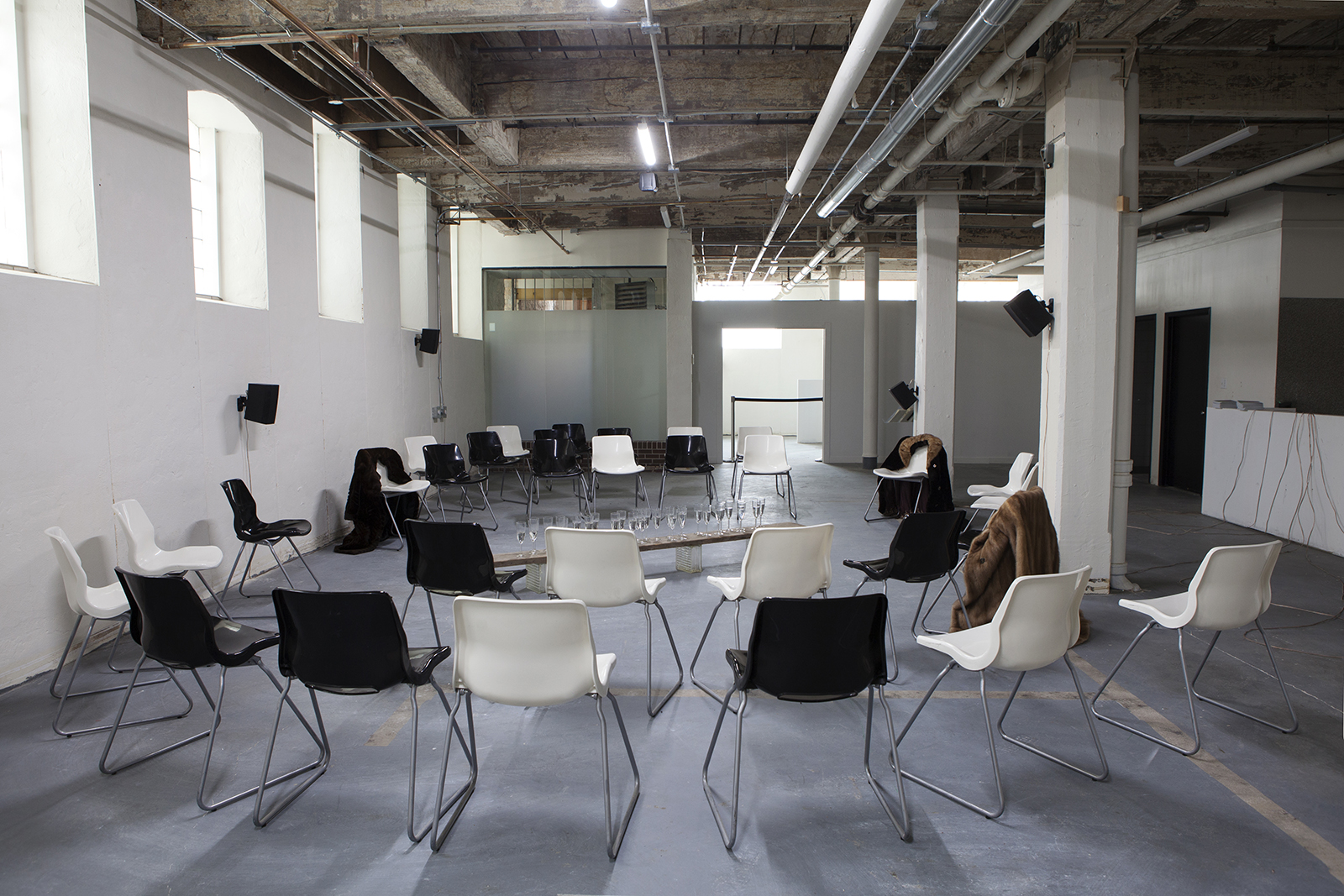 The Great Fur Opera (Hudson’s Bay Suite 1670–) is named for a satyrical libretto (The Great Fur Opera, Annals of the Hudson’s Bay Company), written by Kildare Dobbs and commissioned by the Hudson’s Bay Company to celebrate the company’s 300th birthday in 1970. In this iteration The Great Fur Opera is made up of five graphic scores which reflect on the language and legacy of the Hudson’s Bay Charter by sounding the results of present day extraction in Canada. Each score will be performed and recorded around Winnipeg, (in a nearby silica mine, in a vacant warehouse building, in a large scale retailer on the outskirts of the city), and then played on a provisional stage in a vacant lot of Winnipeg’s exchange district. The Opera offers a reflection of what has been extracted, by resonating the spaces that are left behind.