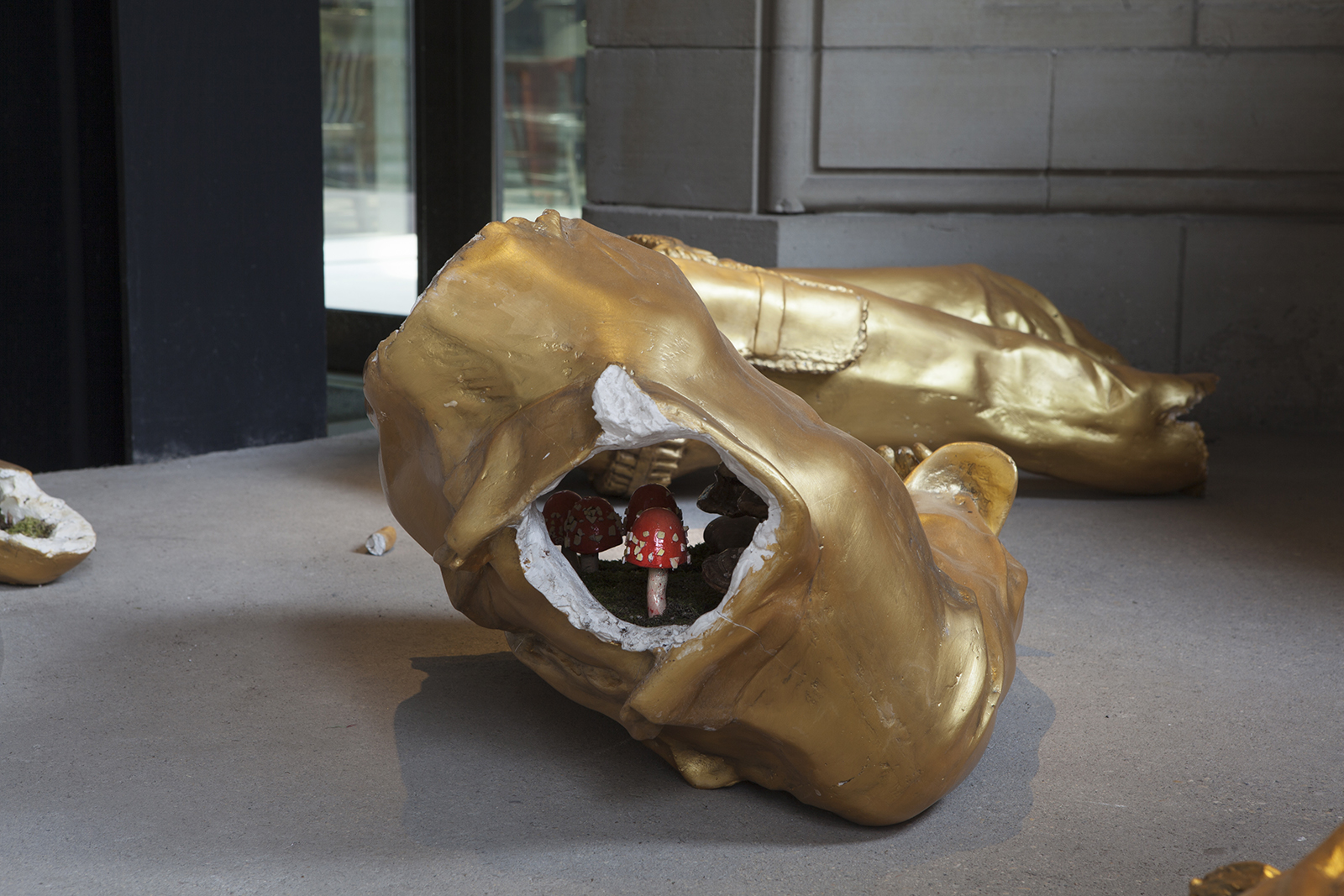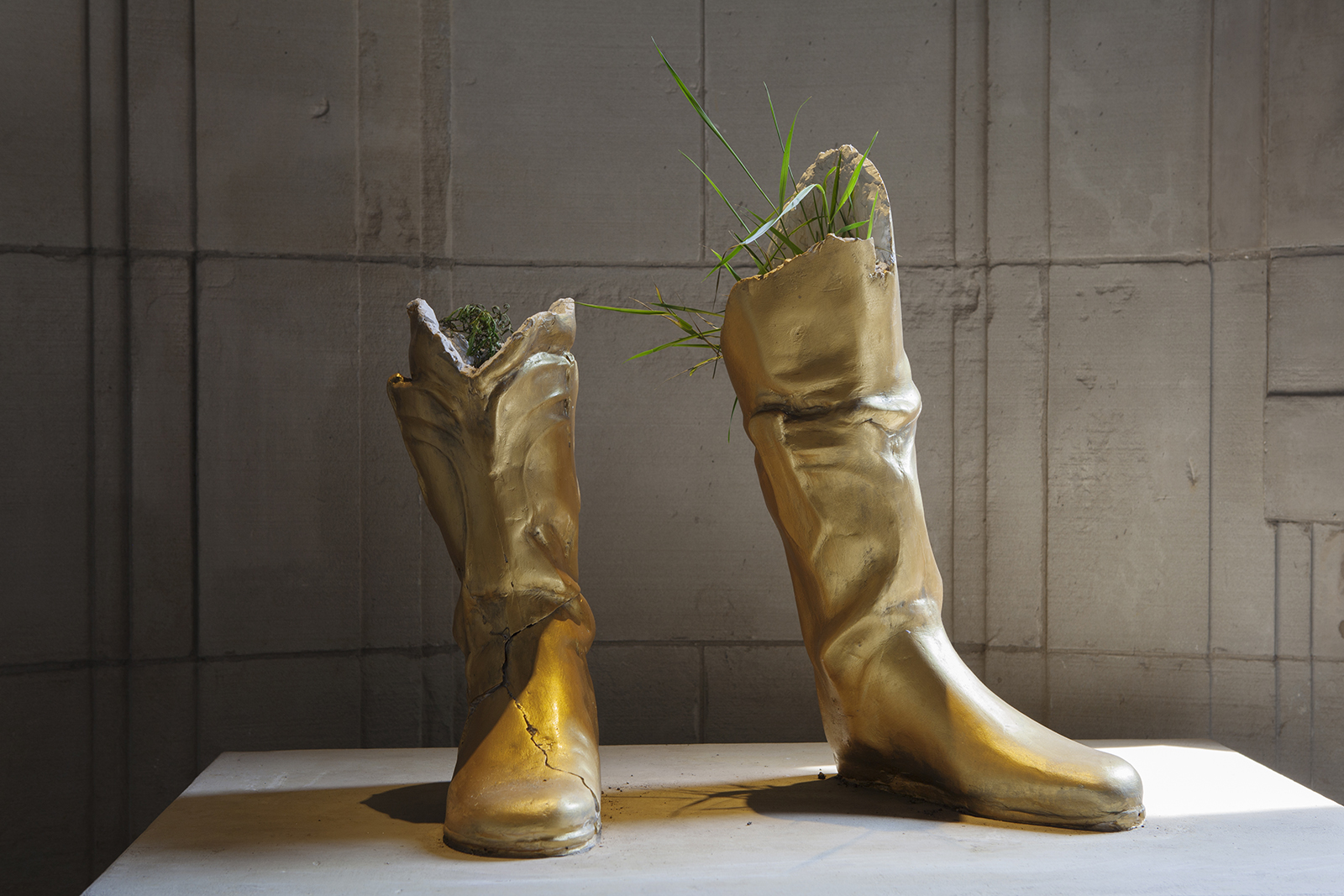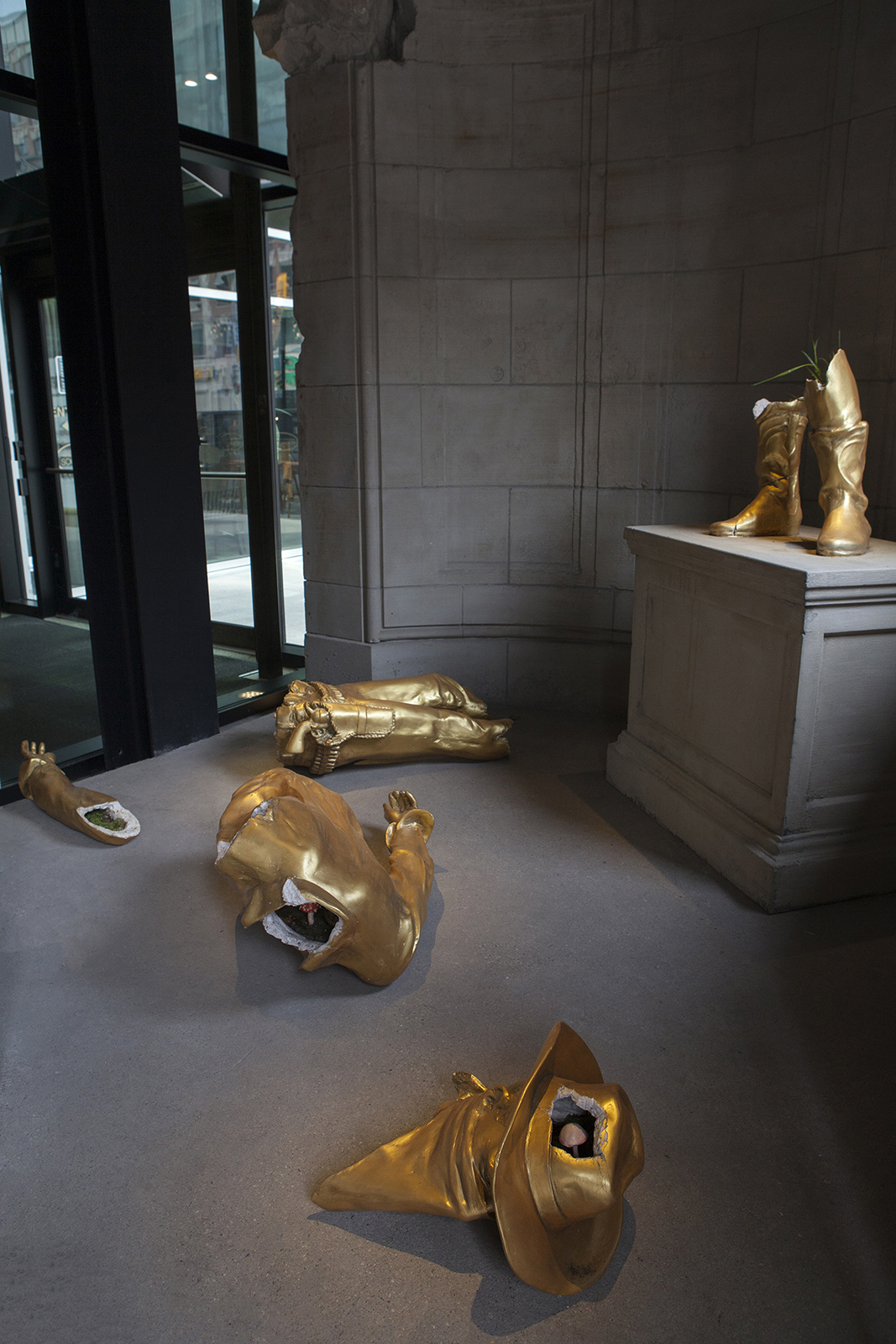 Paul Zacharias, Toppled Monument, plaster, plants.